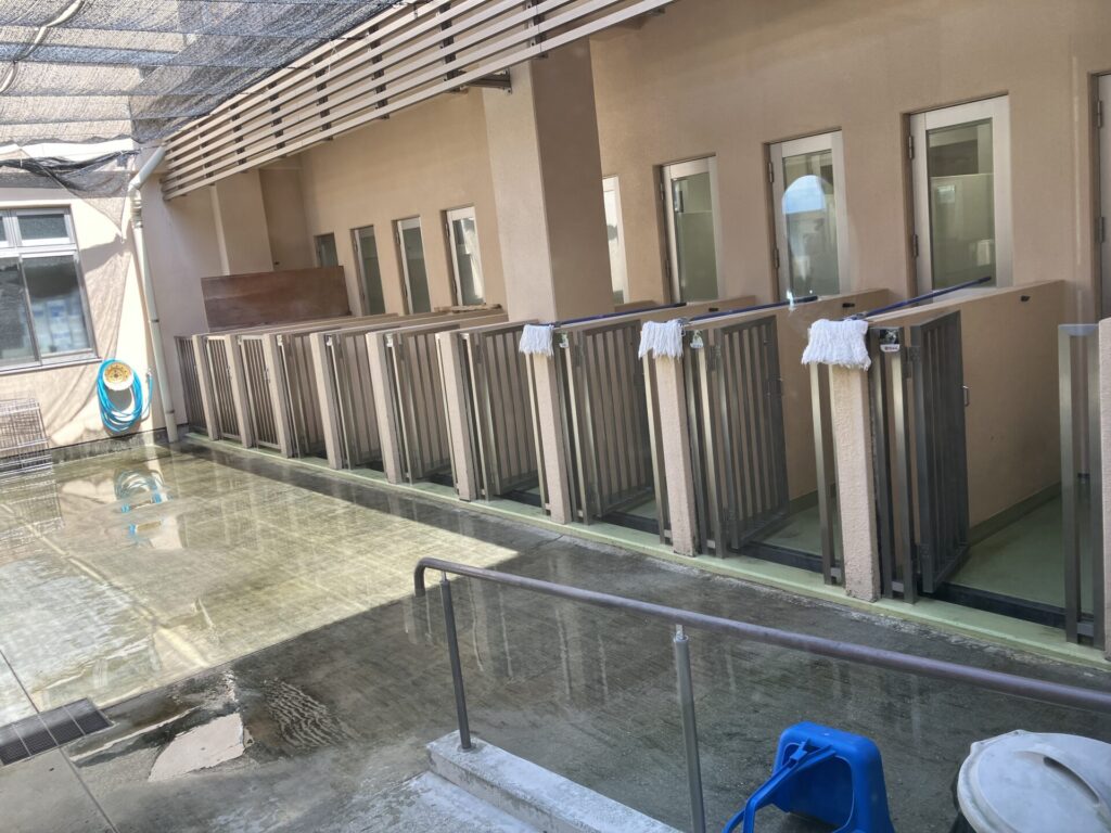 一般には公開されていないエリアで、新しく保護された動物たちが、感染症にかかっていないかを確認したり、心身の状態を整えて譲渡可能になるまでの期間を過ごすための場所です。