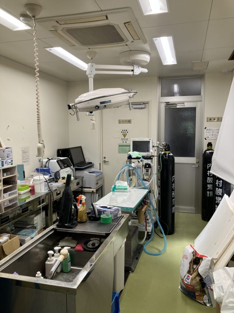 獣医師が常駐し、収容された動物の健康管理や、譲渡前の不妊去勢手術を行うための手術台やレントゲン装置などが備えられています。