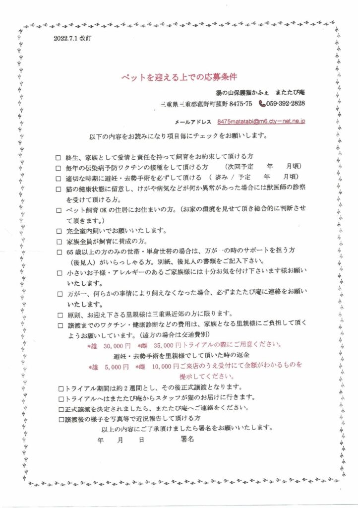 またたび庵で受け入れる猫ちゃんの経緯と、譲渡の流れも教えて頂けないでしょうか?