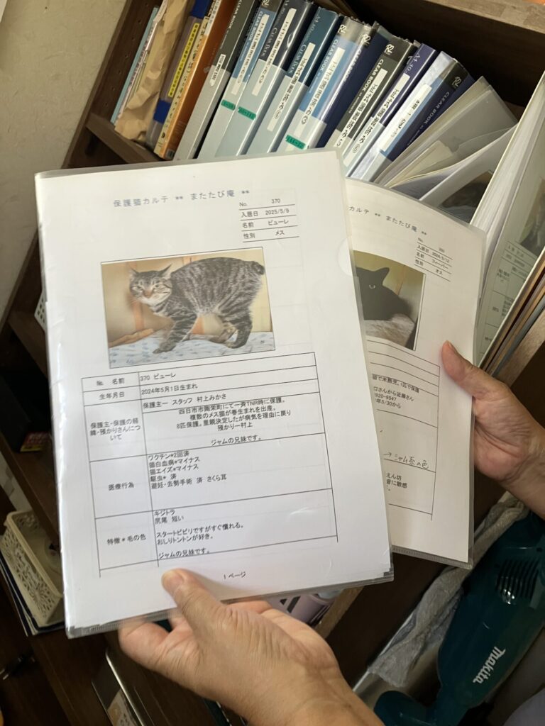 15年ほど前ですね。その後、近所の高校生の女の子に「TNR(捕獲・不妊去勢・元の場所へ戻す)」を勧められて、初めて知りました。牛小屋に集まる猫たちを目の当たりにし、譲渡だけでは追いつかない現実を痛感しました。手術できない月齢の子猫は家で預かって人に慣らし、譲渡会に出す。でも猫はストレスで固まり、なかなか譲渡が決まらない。そんな経験を通して、「譲渡もTNRも、どちらも必要」と学んでいきました。