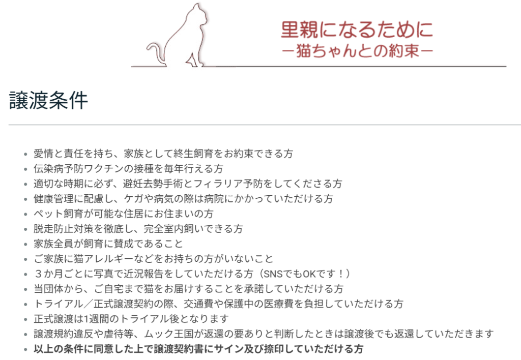 「動物福祉 ムック王国」では、保護猫の譲渡、一時預かりボランティア、支援物資の寄付を随時募集しています。